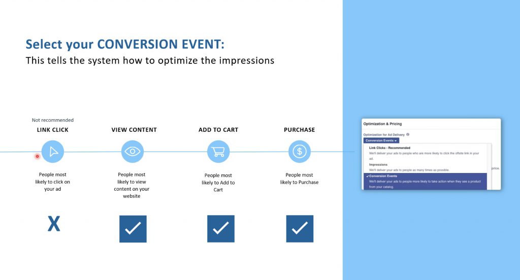ดังนั้น Facebook จึงแนะนำให้ optimize Conversion Event ใน Level ก่อนการการ complete purchase ดังนี้