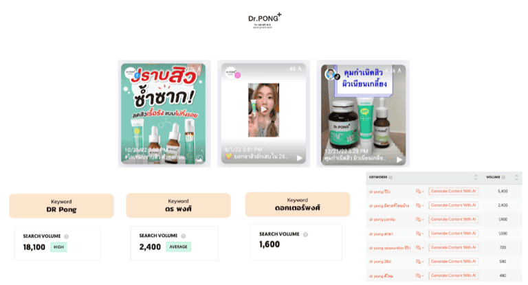 แบรนด์ Dr.Pong มีผลิตภัณฑ์หลากหลาย และไม่ได้เป็นแบรนด์ที่สื่อสารผ่านช่องทางสื่อหลักสักเท่าไร ส่วนใหญ่เราเจอทางสื่อออนไลน์มากกว่า ดังนั้นผู้ใช้จะมีการค้นหารีวิว และสถานที่จำหน่ายเข้ามา แต่ในปัจจุบันนี้มีการโปรโมตน้อย ส่วนใหญ่เป็นการโปรโมตในช่วงปี 2565 โดยเน้นสื่อสารประสิทธิภาพของผลิตภัณฑ์ที่ ยุบไว และมีผลการรับรองยืนยัน สร้างความน่าเชื่อถือได้มากขึ้น