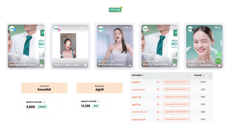 แบรนด์ Smooth-E เราอาจจะเริ่มต้นรู้จักแบรนด์มานานจากผลิตภัณฑ์โฟมล้างหน้า ซึ่งในปัจจุบันได้มีคุณโบว์ เมลดา เป็น Presenter ครีมลดรอย และคุณแอลลี่ เป็น Presenter เจลลดรอยสิว โดยทางแบรนด์เน้นโปรโมตผลิตภัณฑ์ครีมลดรอยมากกว่า มีการให้ Product Benefit โดยเฉพาะ MES เทคโนโลยีที่ช่วยลดรอยด่างดำ รอยแผลเป็นได้เป็นอย่างดี รวมไปถึงริ้วรอย และรอยสิว และการมีการันตีรางวัล รวมถึงยอดขาย 100 ล้านหลอด ถือว่าเป็นจุดแข็งหนึ่งของแบรนด์ ซึ่งผลิตภัณฑ์ครีมลดรอยเหมาะกับผู้ใช้ที่เจอปัญหาด้านรอย และกลุ่มอายุ 40+ ที่มีริ้วรอย ส่วนเจลลดรอยสิวเหมาะกับ Younger ที่เจอปัญหาสิวมากกว่าวัยอื่น นอกจากนี้ยังมีการให้ข้อมูลผลลัพธ์การทดสอบและระยะเวลาการหายของสิว ที่ช่วยการันตีคุณสมบัติของผลิตภัณฑ์ได้มากขึ้น