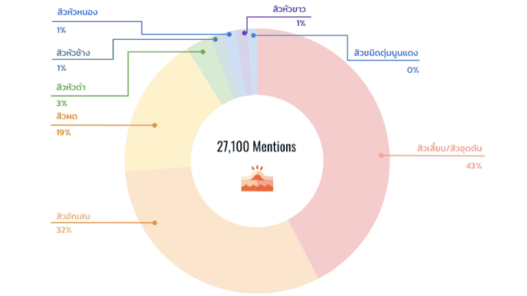 เมื่อเรานำ Keyword เหล่านี้ใส่ในระบบ Social Listening Tools จะพบว่าผู้คนมีการกล่าวถึงปัญหาสิว ดังนี้
